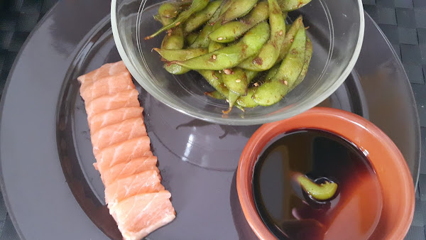 Montamos el plato y, si os gusta, podéis poner un poco de salsa de soja con pasta de wasabi para acompañar.
