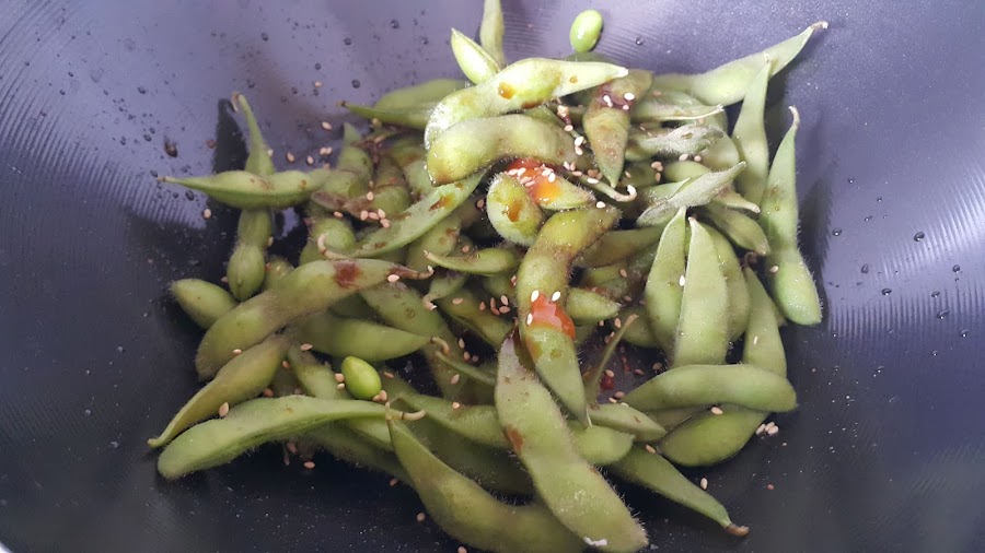 Hervimos las vainas de edamame 3 minutos y escurrimos.