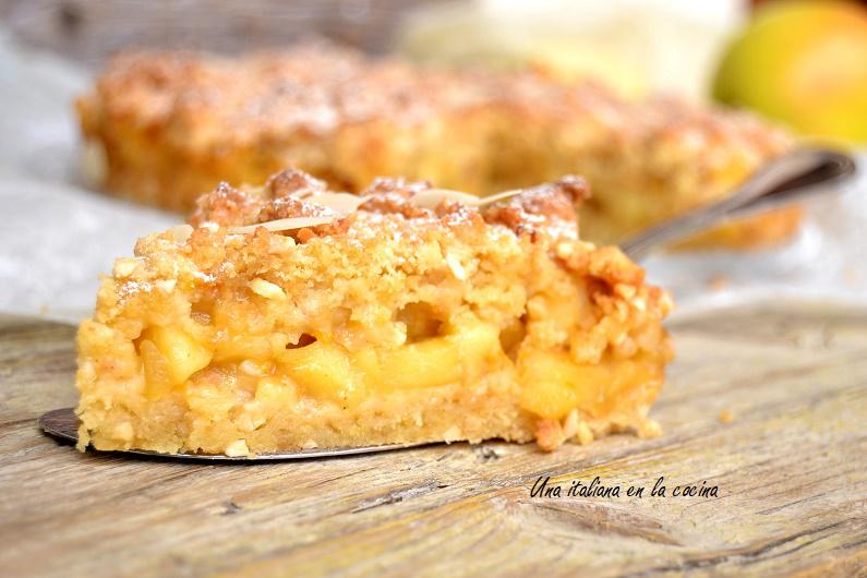 Cuando llega septiembre me gusta preparar tartas de manzanas y este año también he cumplido con mi costumbre. Hoy he hecho una sbriciolata de manzanas y almendras. Sbriciolata quiere decir hecha migas, como verás en la preparación, la superficie de la tarta se recubre con migas de masa, es lo que los ingleses llaman crumble. Aunque haya esta similitud con la gastronomía inglesa en Italia la sbriciolata es un postre tradicional nacido como una modificación de una crostata.Preparar una sbriciolata resulta mucho más fácil y menos laborioso que preparar una crostata, así que si buscas preparar una receta de postre italiano que no te lleve mucho tiempo esta es tu receta.
