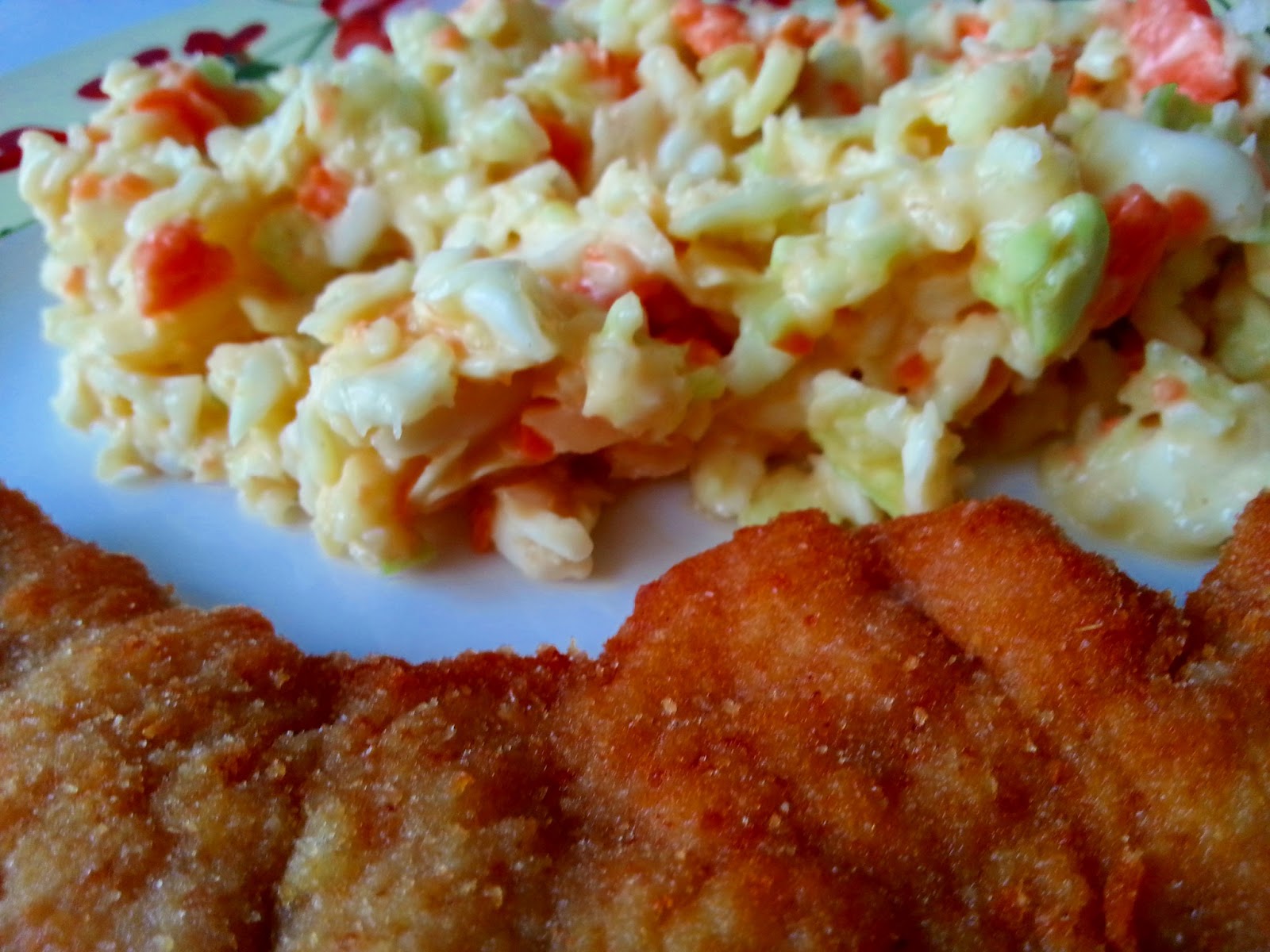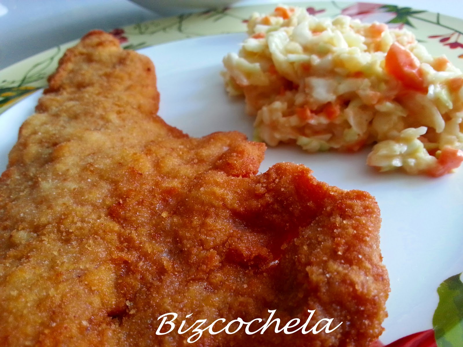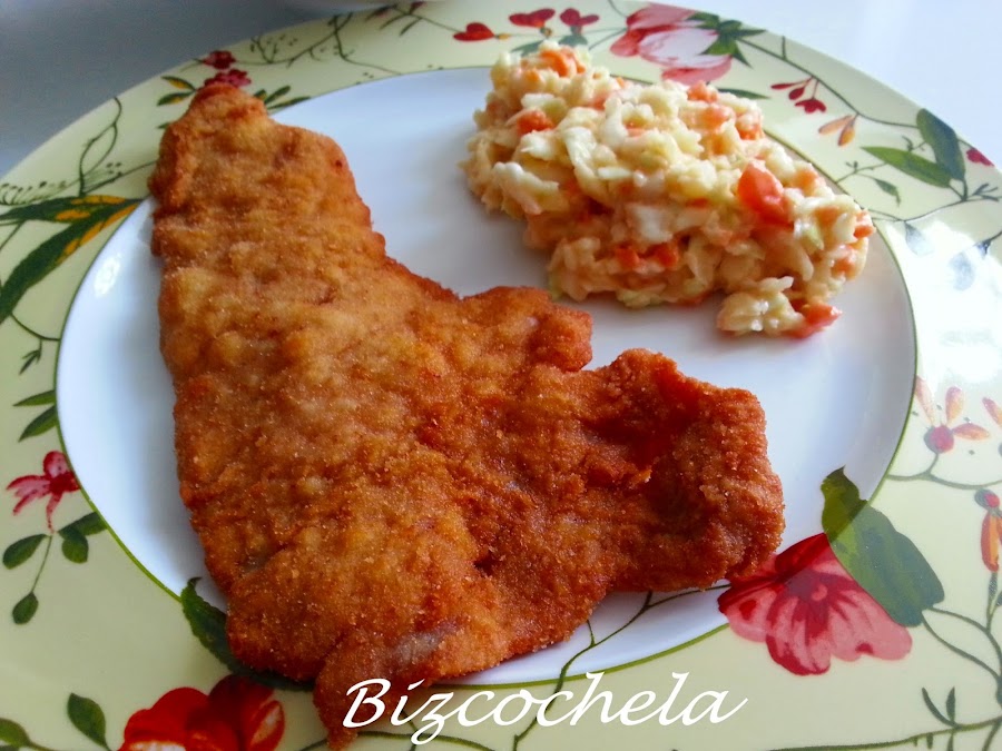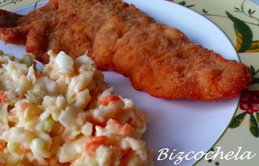 Yo suelo hacer más de la cuenta y congelo los filetes ya empanados, así tengo para otro día. Y como acompañamiento, les he puesto la ensalada de col americana que publiqué en su día.