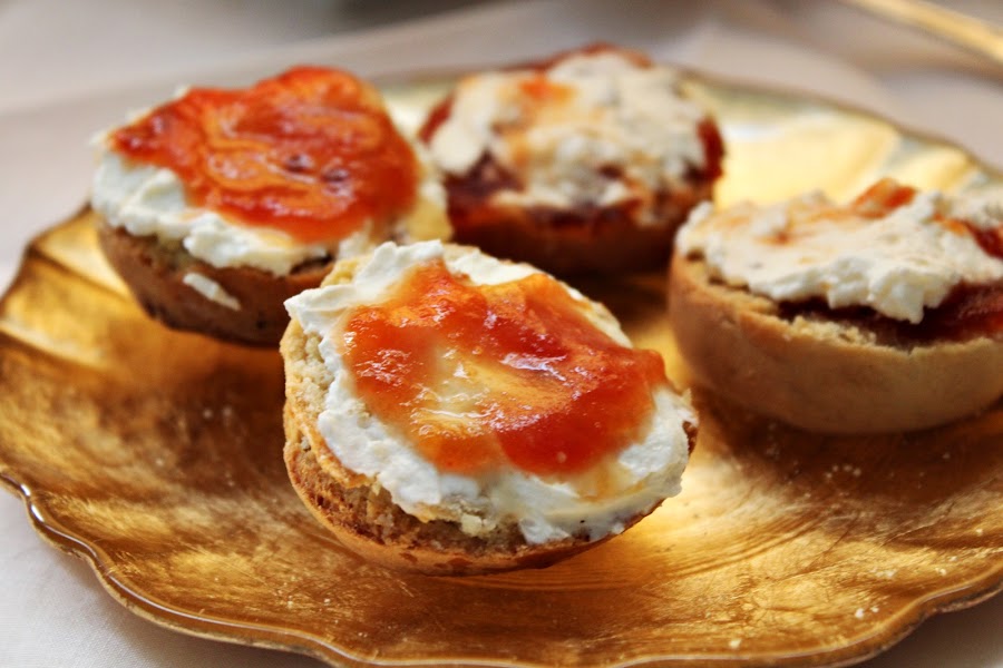 Parte los scones por la mitad y unta la crema por encima, termina con un poquito de mermelada de fresa, de frutos rojos o de tomate casera como la que le he puesto yo y que hice hace unos días.
