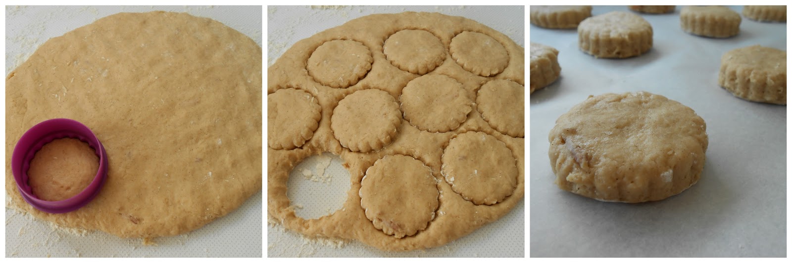 Colocar en una bandeja para horno, sobre papel vegetal y cocinar en horno a 180 grados durante 12 minutos aproximadamente. (Me olvidé de pintarlos con la yema de huevo batida, buaaaaaaa...) Recuerden que cocino en un horno a gas, con calor sólo de abajo y en la rejilla central.