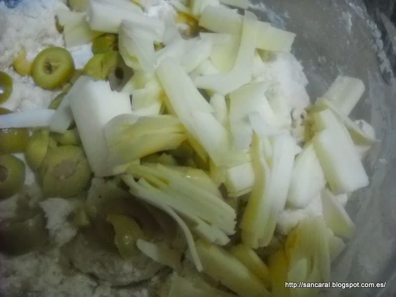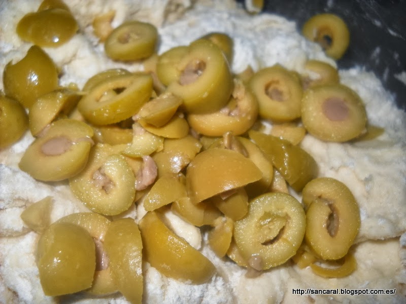 Ahora añade las olivas cortadas y el queso rallado....