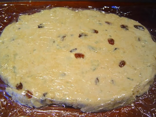 La estiramos entre dos capas de plástico de cocina y dejamos por 1/2 hora en la nevera.