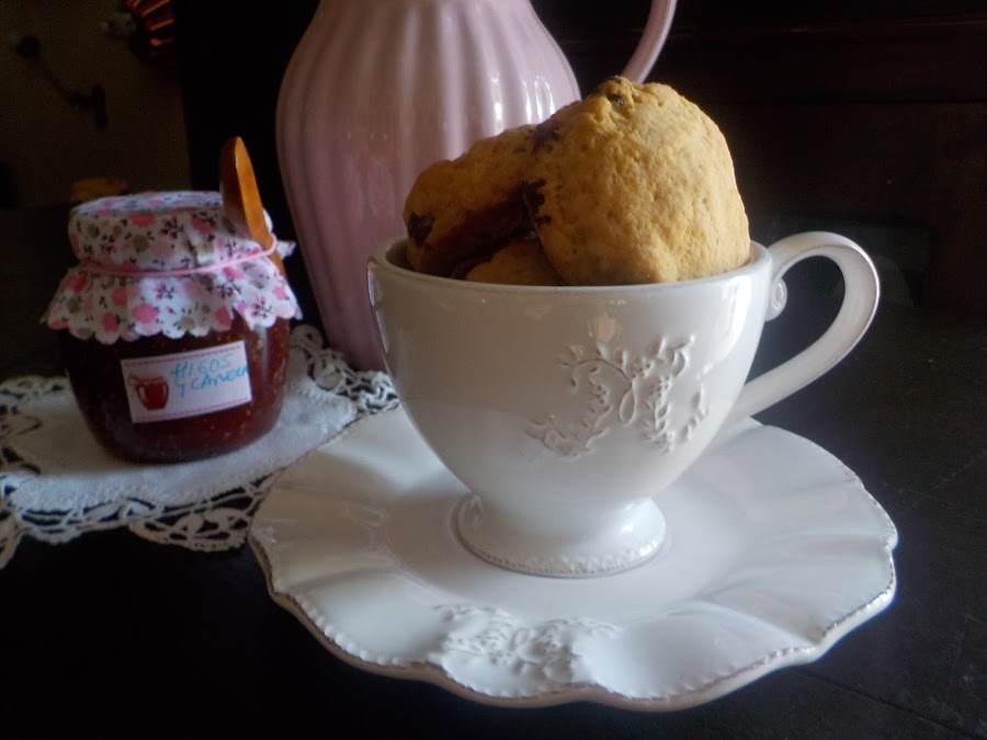 3.- Extiende la masa con un rodillo, hasta obtener un grosor de unos 2 cm. y crea a discos con un molde redondo de cortar galletas. Colócalos en una placa de horno forrada con papel de horno y pincelar la superficie de los scones con aceite de oliva. Introduce la placa en el horno precalentado a 200ºC unos 15-20 minutos, hasta que estén un poco dorados. Déjalos enfriar, córtalos por la mitad en sentido horizontal y rellénalos a tu gusto con confitura de frutas, etc...