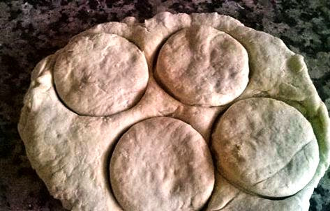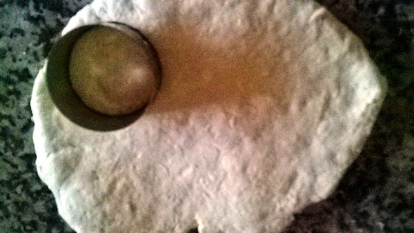 Cortar los círculos y ponerlos en una bandeja con papel de horno.