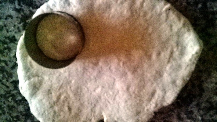Pasar la masa a una superficie enharinada y amasar un poco. Formar un círculo de masa y estirar hasta que tenga un grosor de 2 centímetros.