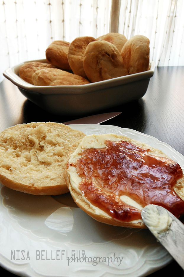 Los scones también son conocidos como panecillos ingleses, english muffins, hot muffins o breakfast muffins.