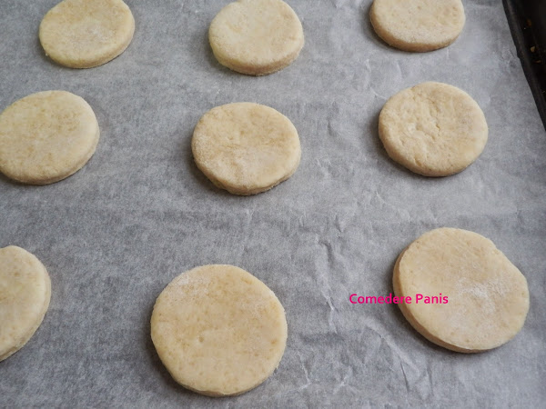 Corta la masa con un corta-pastas redondo de unos 5 cm. aproximadamente, y con cuidado colócalos sobre la bandeja de horno, dejando espacio entre ellos pues crecerán algo dentro del horno. Pinta los scones con la butermilk e introduce la bandeja en el horno durante unos 12 minutos, hasta que suban y se doren.