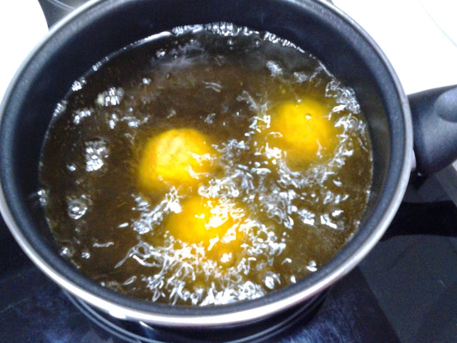 Batimos el huevo, pasamos por él las bolas de carne y rebozamos en pan rallado. Ponemos abundante aceite en un cazo y cuando este caliente freímos a fuego medio hasta que se doren. Dejamos escurrir en papel absorbente antes de servir.