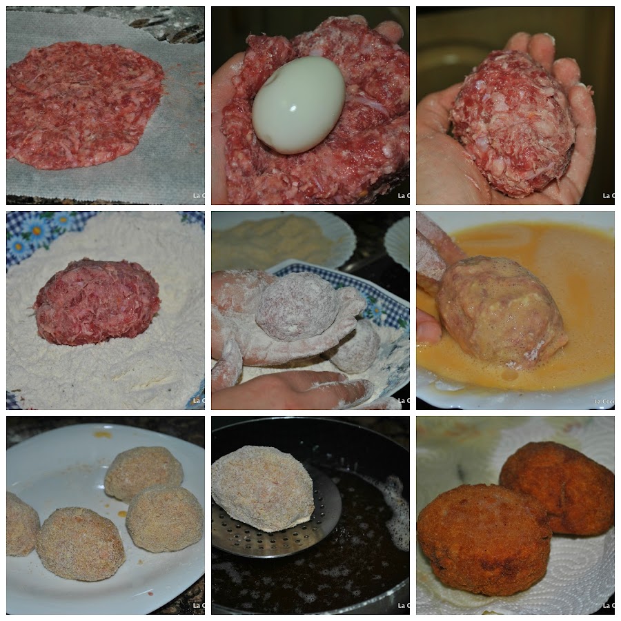 Y rebozamos los huevos pasándolos por la harina, luego por el huevo y finalmente por el pan rallado con mucho cuidado.