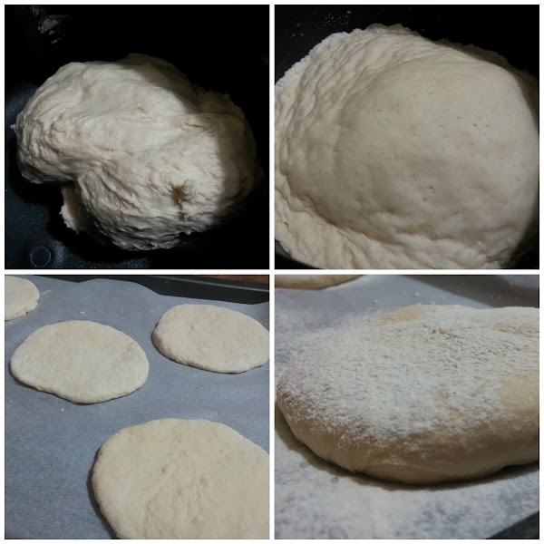 Derramamos la masa en una superficie enharinada, dividimos en porciones iguales, las trabajamos ligeramente y con la ayuda del rodillo extendemos creando semicircunferencias.