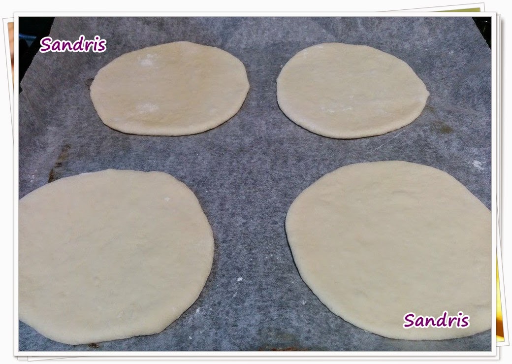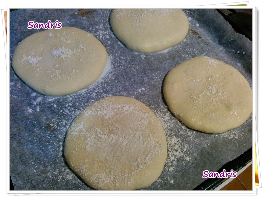 Mezclamos la harina y la sal por una parte. Por otra parte mezclamos la levadura con la leche para deshacerla y luego le ponemos el agua. Amasamos bien para que quede una textura homogénea y dejamos reposar. Como es habitual, tenemos que dejar que leve al menos el doble de su volumen, todo depende de la temperatura de donde lo tengamos, ya que cuanto más frío haga, más tardará en levar y necesitaremos más tiempo. Una vez ha levado, hacemos los bollitos que queramos. Yo he hecho unos más pequeños y otros un poco más grandes. Los aplastamos un poco para que se quite el aire y darle forma con el rodillo o con la mano si os apañáis bien y listos para dejar que leven de nuevo.