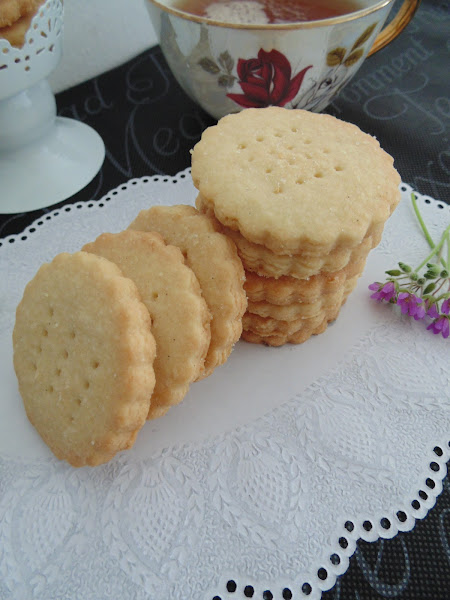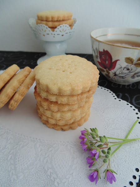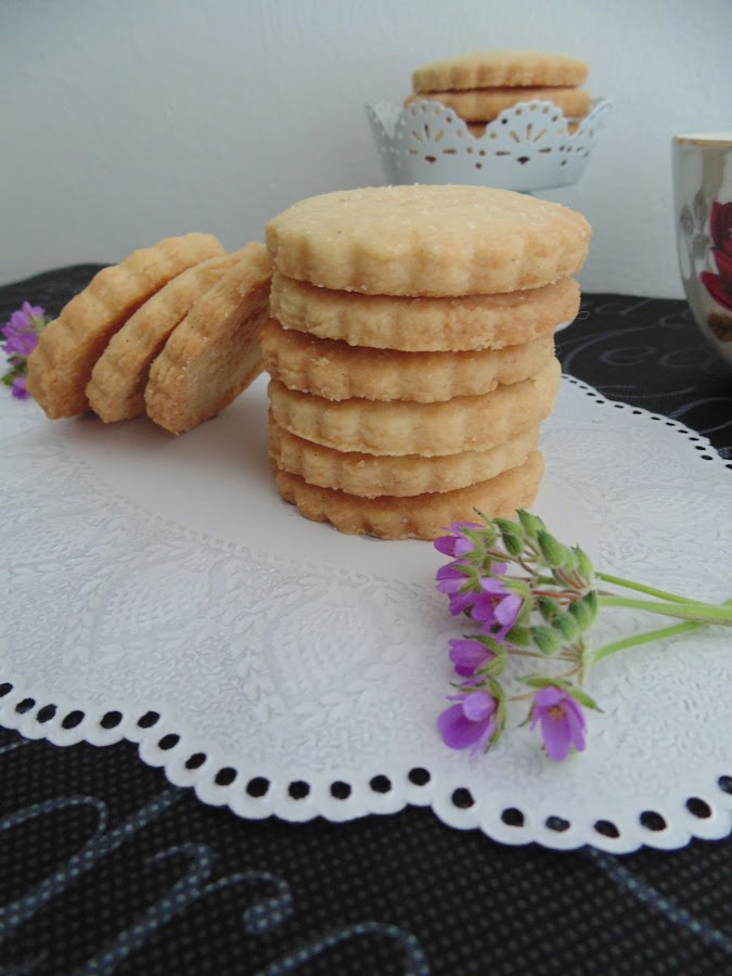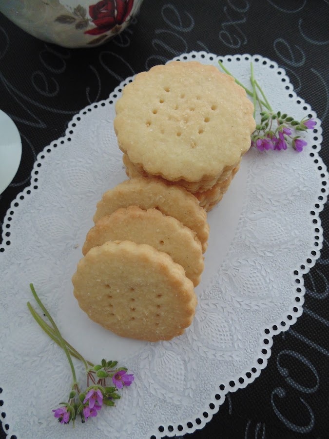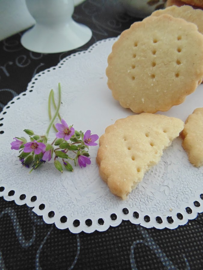 Bueno, ahora sí, pasemos a la receta. Las shortbreads son galletas de origen escocés. Sus ingredientes son básicos (harina, mantequilla y azúcar) y su técnica se basa en elaborar la masa a presión. Es de una textura arenosa que una vez horneada se deshace en la boca cuando la comemos. Es descendiente de un pan medieval que sustituyó en su elaboración la levadura por la mantequilla y se ha ido refinando hasta obtener lo que ahora conocemos por shortbreads. La receta que más se aproxima es de 1736 y se le atribuye a la escocesa Mrs. McLintok. Se reservaban para ocasiones especiales como bodas, Navidad o Hogmanay (víspera de año nuevo escocesa). Hoy en día es un clásico y podéis encontrarla en algunos supermercados de la mano de empresas que la exportan mundialmente como es el caso de Walkers.