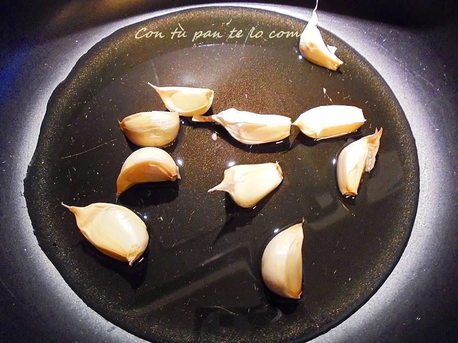 La otra mitad de la receta es el ajo, un ingrediente básico en nuestra cocina que dejando aparte sus propiedades medicinales (por desgracia gran parte se pierde en la cocción), da un sabor como pocos. Es verdad que tiene inconvenientes porque puede repetir y dar mal aliento, pero con un poco de sentido común no hay porqué renunciar a estos platos con intenso sabor a ajo. Quizás no sea la mejor receta para un día entre semana, con la tarde llena de reuniones o trabajando de cara al público pero podemos reservarla para el finde, por ejemplo, y todos contentos.