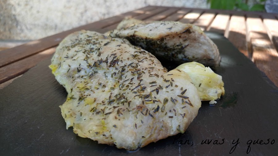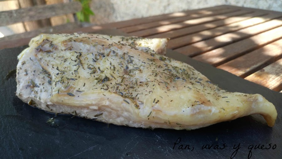En un bol mezclamos el aceite de oliva con el tomillo. Revolvemos. Salamos el secreto y lo pincelamos con el aceite con tomillo.