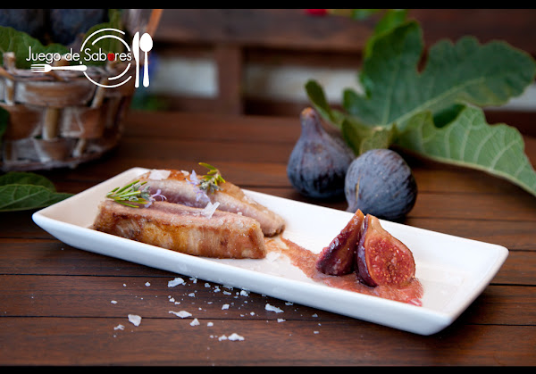 Cortar en trozos de dos centímetros de grosor y servir en el momento, acompañado de la salsa de higos y unas escamas de sal.