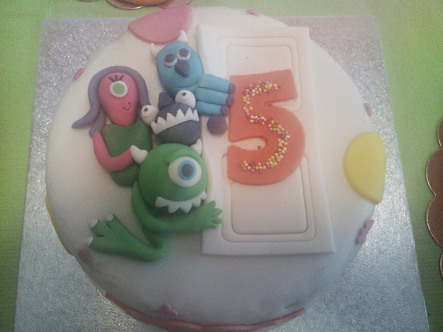 Pues si, la segunda tarta de cumpleaños de mi niño. La primera fue para celebrar el cumpleaños con los compañeros del cole, que fue de los angry birds como ya la visteis. Y esta fue para celebrarlo con la familia y mi niño me dijo que la queria de los monstuos s.a. La tarta fue de bizcocho de yogurth y el relleno de butter cream de chocolate, salio muy esponjoso y muy rica y nada pesada.