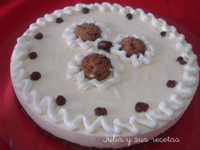 Para ver la receta completa pincha aquí: tarta de queso mascarpone y cookies