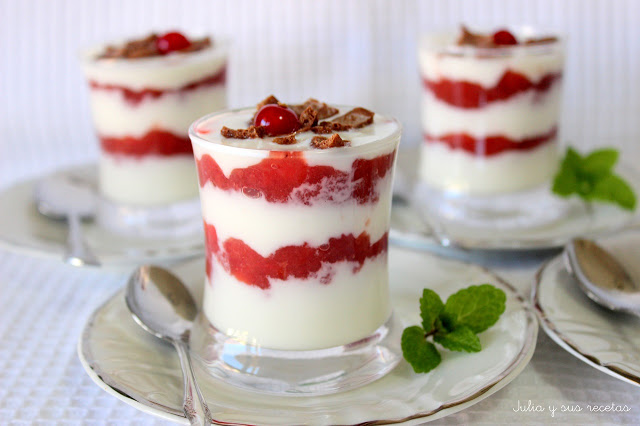Y para finalizar no podía faltar un postre que en esta ocasión viene de la mano de Julia y sus Recetas. Unos preciosos vasitos con muy poquitas calorías que compensarán nuestro deseo de consumir dulce.