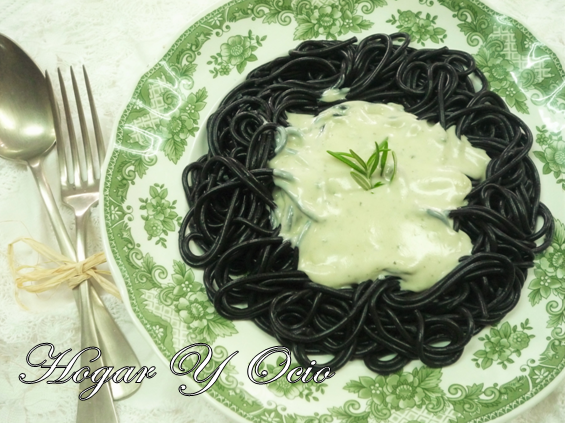 Los ingredientes que se necesitan son espaguetis negros, queso azul, nata (crema de leche), harina y mantequilla. Por una parte se cuecen los espaguetis y se escurren. Mientra, se prepara la salsa. Para ello, se derrite la mantequilla, se añade la harina y se tuesta un poco. Luego se incorpora el queso en trocitos y la nata (crema de leche), se deja que espese y se retira del fuego. Por último se mezlcan ambas elaboraciones. Un plato de lo más gustoso para los amantes del queso, si te gusta puedes ver la receta completa pinchando aquí: espaguetis negros con salsa de queso azul.