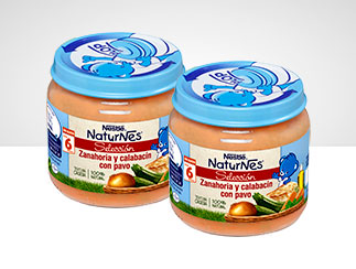 14. NESTLÉ NATURNES de Zanahoria y Calabacín con Pavo son deliciosas recetas 100% naturales y especialmente adaptadas para bebé, sin sal ni azucares añadidos, para que tu peque pueda disfrutar de un sabor natural acostumbrándole a tener unos buenos hábitos.