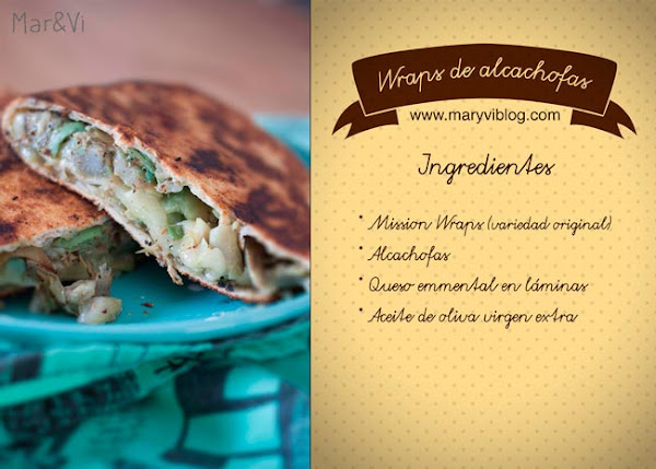 Para terminar utilicé la variedad original de mission wraps para otra receta caliente, en este caso con alcachofas y queso, estos son los ingredientes: