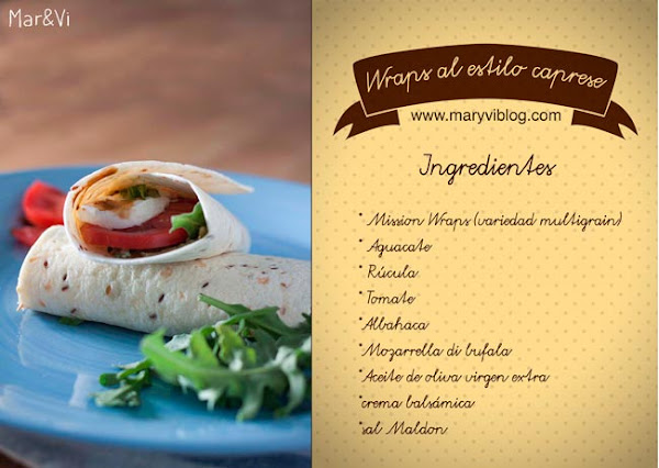 Pelamos el aguacate, quitamos el hueso del centro y pisamos con un tenedor haciendo una pasta, con un poco de sal y aceite de oliva virgen extra. Untamos el aguacate en el centro de un mission wraps, y colocamos encima por capas: rúcula, rodajas de tomate, mozzarella di bufala en trozos y hojas de albahaca picadas. Aderezamos con crema balsámica, aceite y un poco de sal Maldon. Enrollamos el Wraps y cortamos por la mitad para servir.