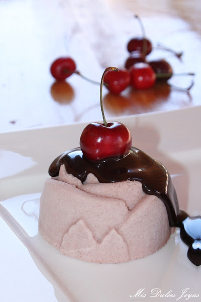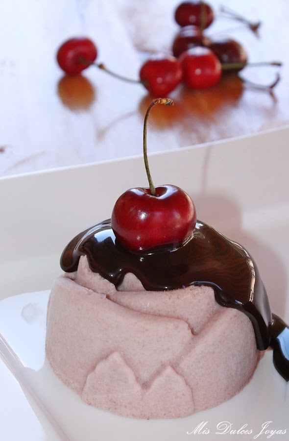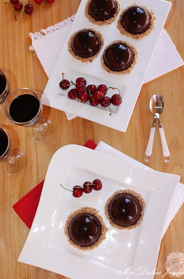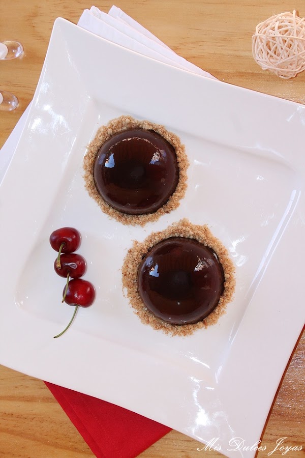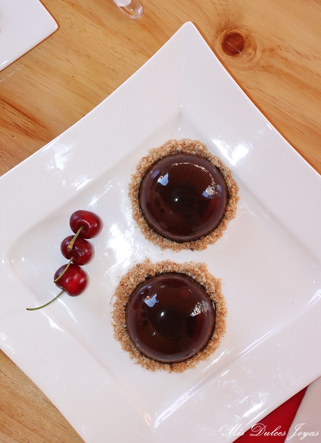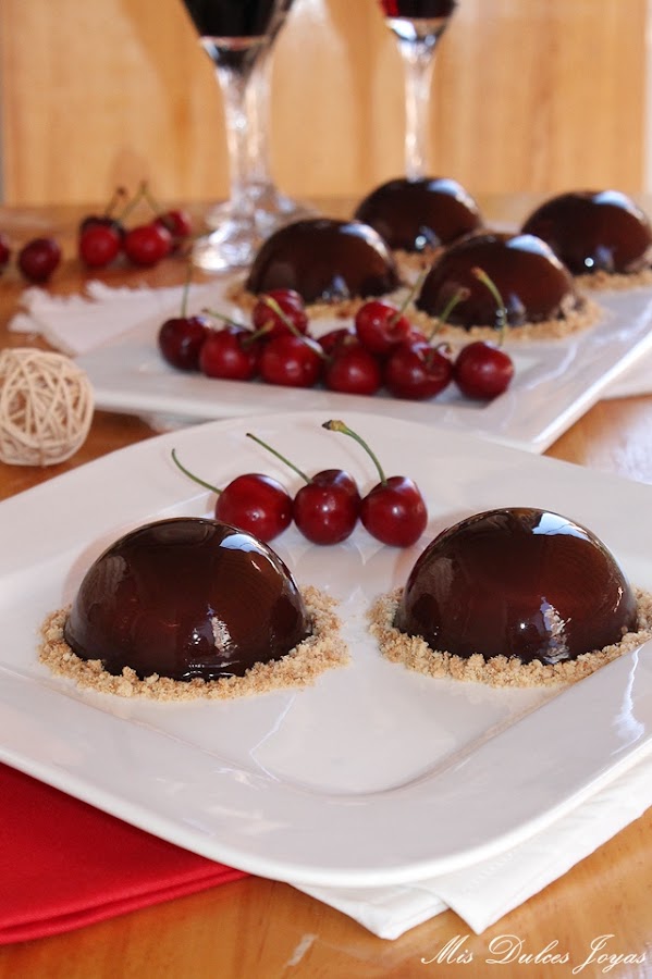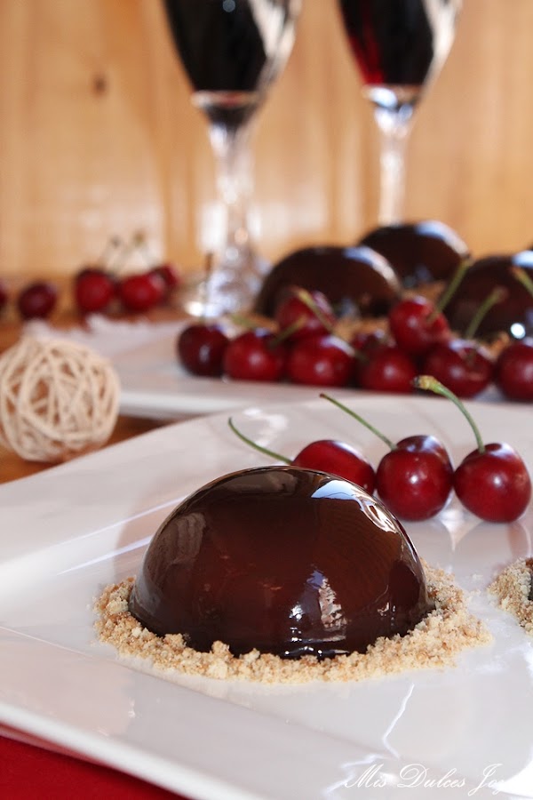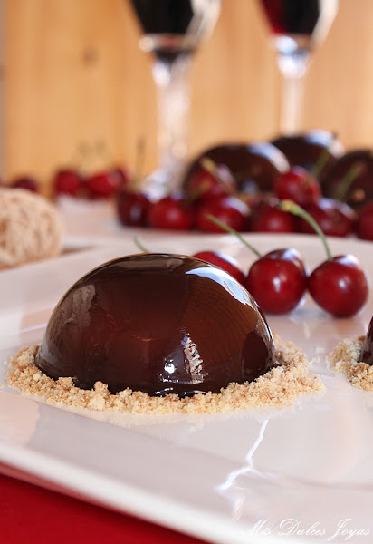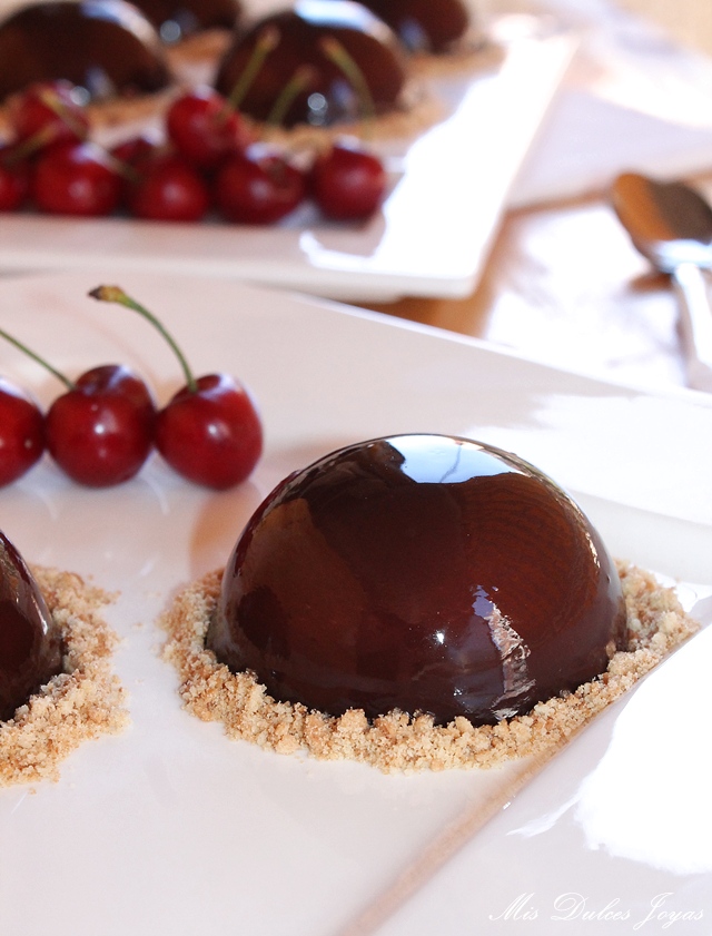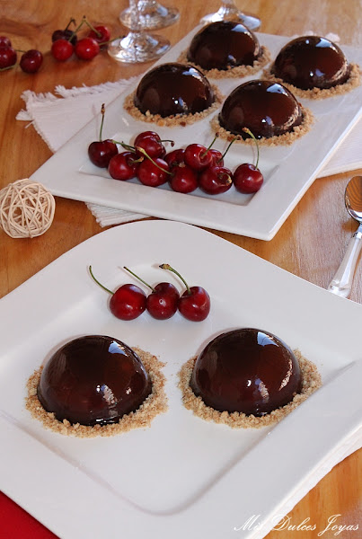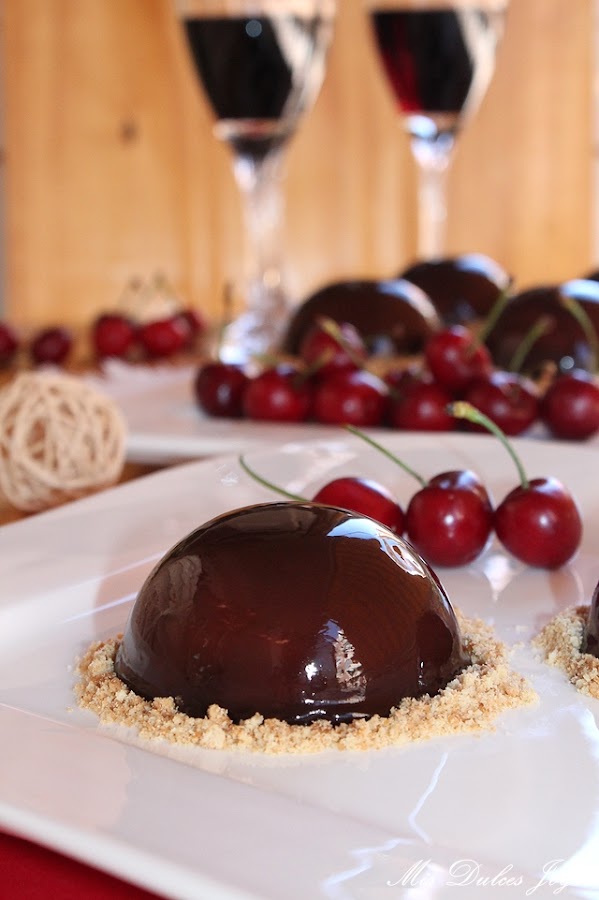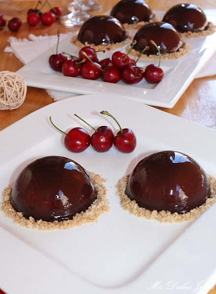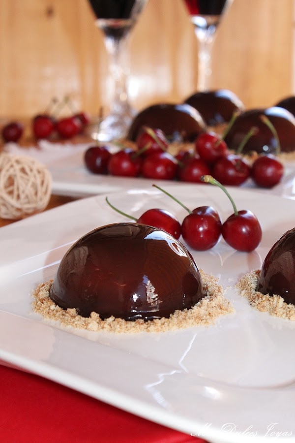Semiesferas de mousse de cerezas con glaseado de chocolate