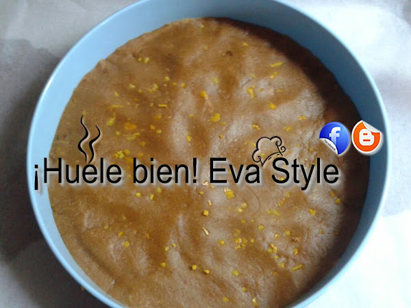 3.- Trituramos las galletas, las mezclamos con la margarina y la ralladura de naranja. La introducimos en un molde, le damos forma. Horneamos la base de galletas a 180ºC unos minutos para que se nos quede crujiente.