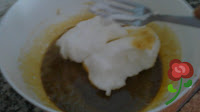 Mezcla las yemas con el azucar y el queso de kefir.