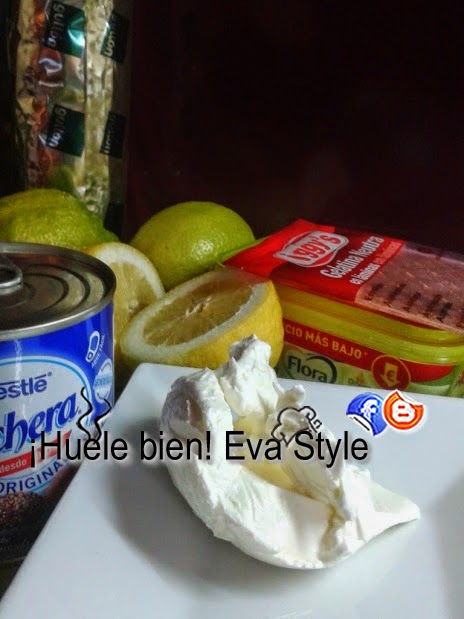 5.- Montamos la nata (crema de leche), con la nata (crema de leche) de liquida, el azúcar y la nata (crema de leche) del bote Ermol. Lo mezclamos con la leche condensada con la ayuda de una varilla. Rallamos una cuchara de la piel de limón y la agregamos.