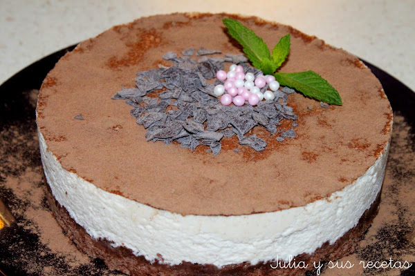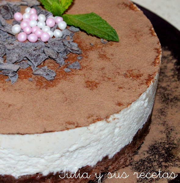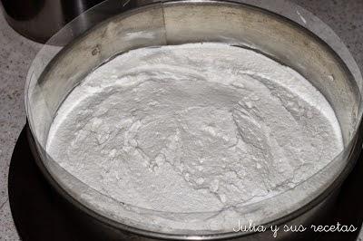 La echamos en el molde encima de la base de bizcocho y la pasamos al frigorífico durante 4-5 horas o hasta el día siguiente. Podeis meterla en el congelado, pero a mi me gusta mas sin congelar.