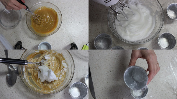 Montamos las claras a punto de nieve y se las añadimos a la crema con movimientos envolventes.