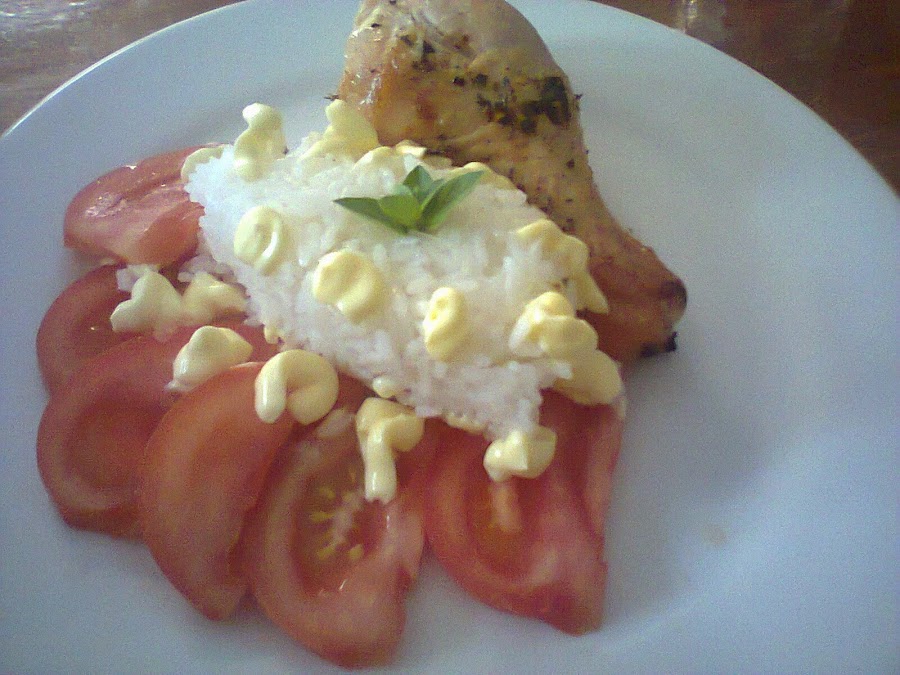como este arroz blanco con ensalada de tomates y acompañado por un pollo al horno que les muestro hoy!!!!