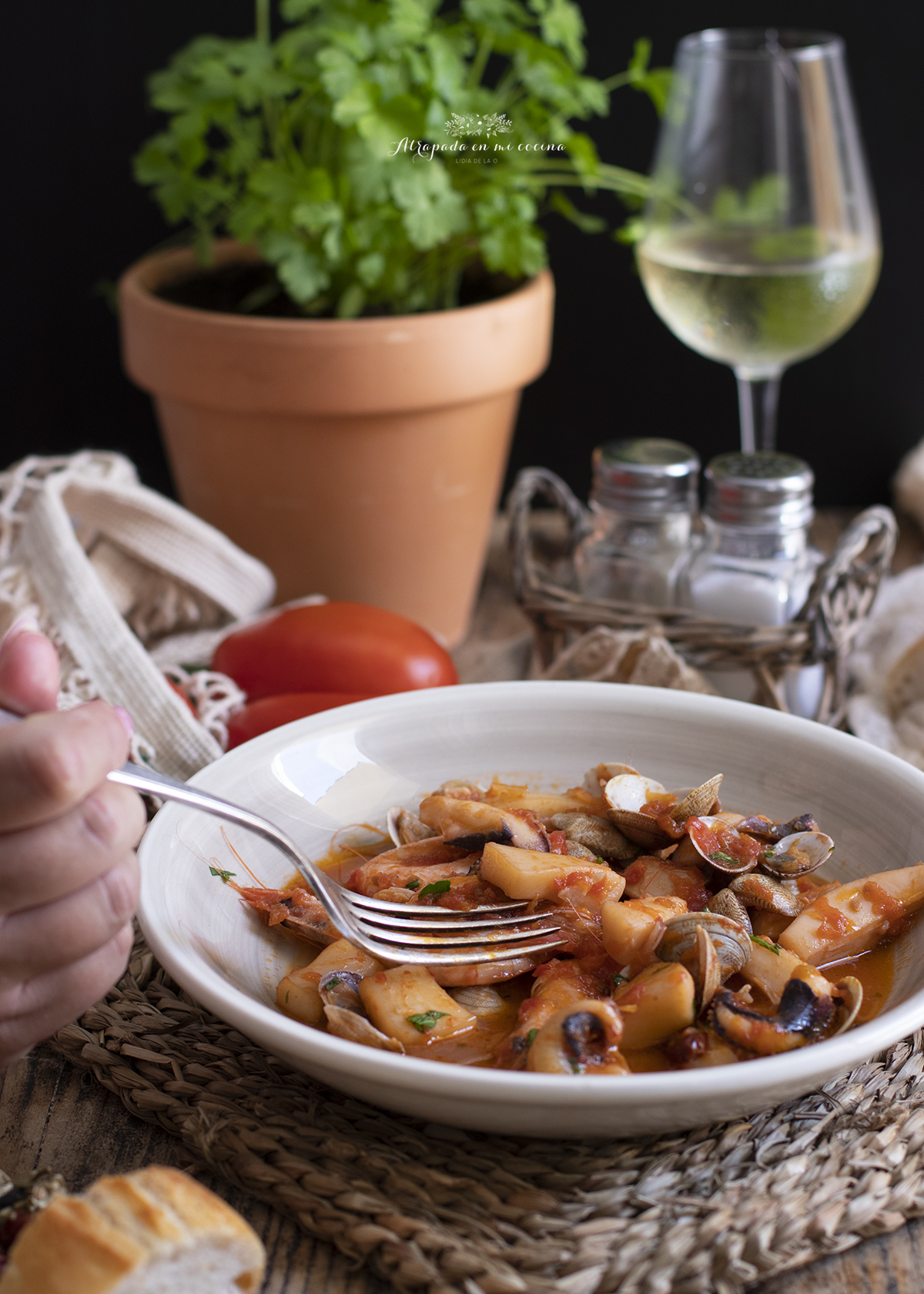Acompañamos de pan (el mío casero, os dejo el enlace a la receta ) y con una copita de vino blanco bien fresquito.