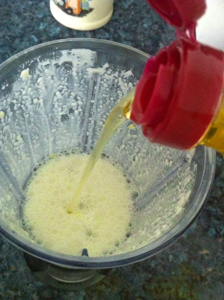 Una vez este unido, añadiremos un chorrito de aceite de oliva y volveremos a batir...
