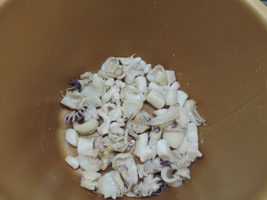 Ponemos 1 cucharada de aceite de oliva en la cubeta de la olla, la echamos dentro.