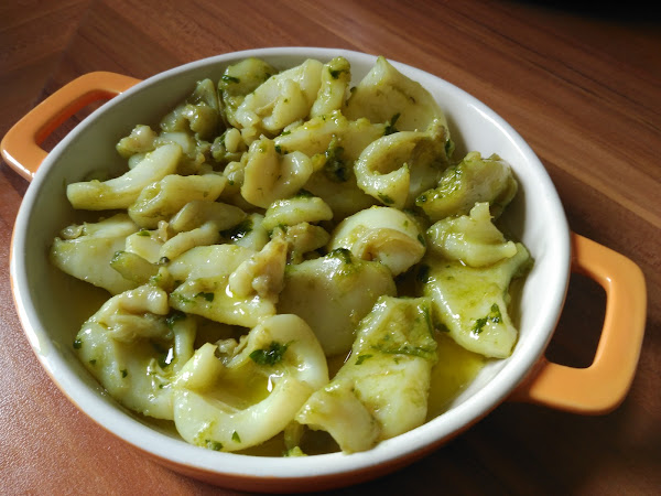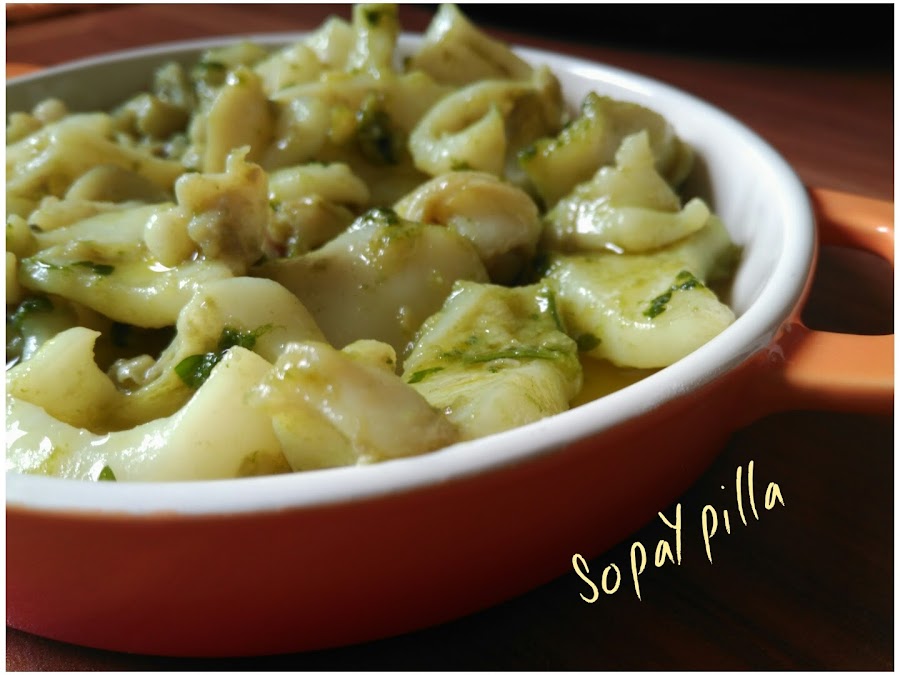 Hoy toca picoteo, pero del bueno...nada de berberechos de lata...esta sepia queda tierna, tierna y está para dar saltos de alegría...no le hace falta nada más que un buen vermut o una caña fresquita!!