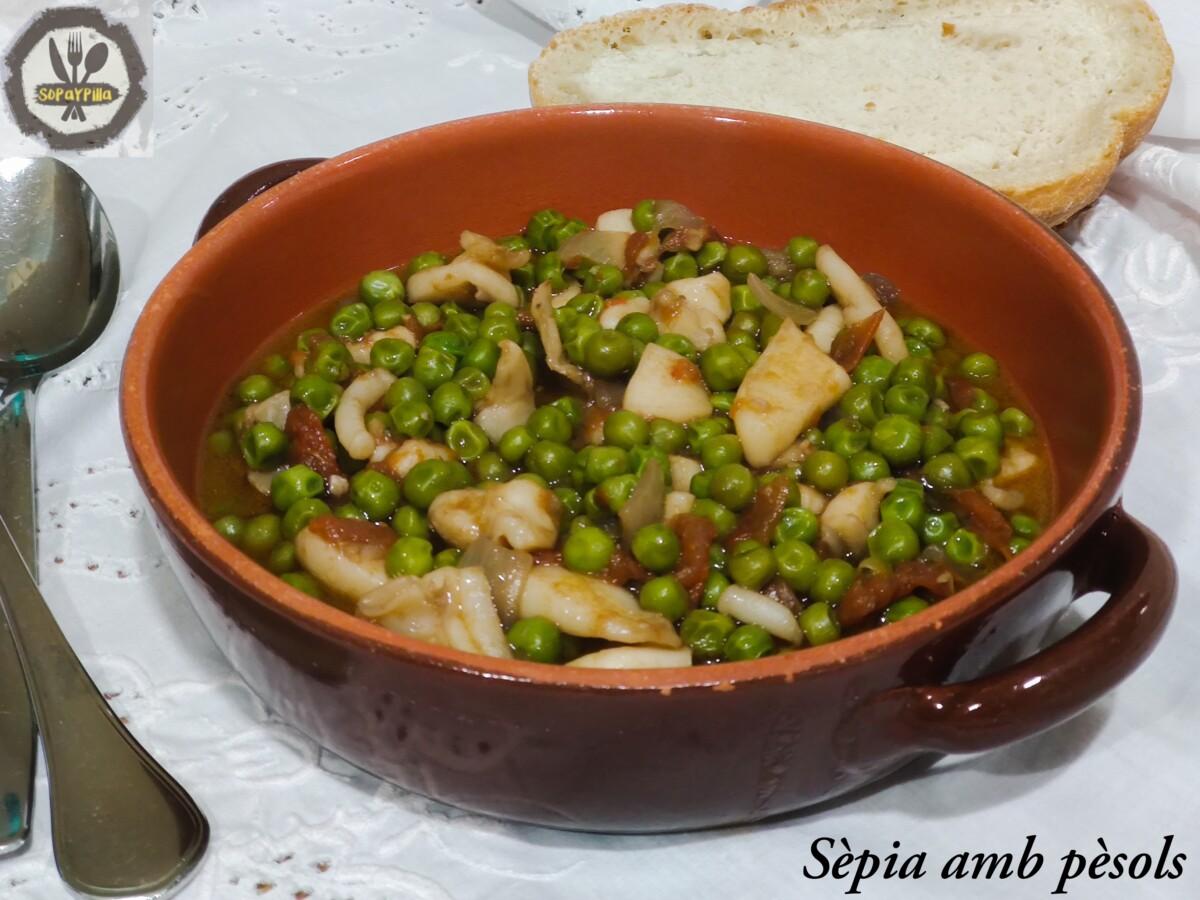 Lo buenos que están los platos de pescado y legumbres, verdad? Aquí te traigo un ejemplo perfecto de sepia con guisantes, de la perfección hecha plato. A medio camino entre tenedor y cuchara, lo que sí es seguro es que te hará falta mucho pan para acompañarlo, está divino!