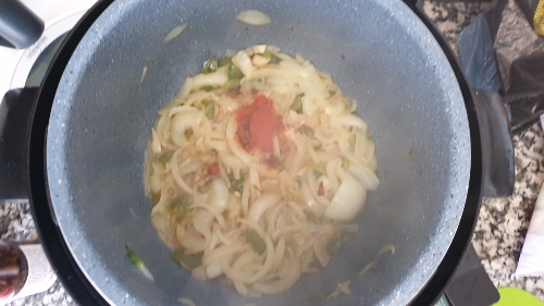 2- Picar la cebolla, pimiento y ajos, menudos