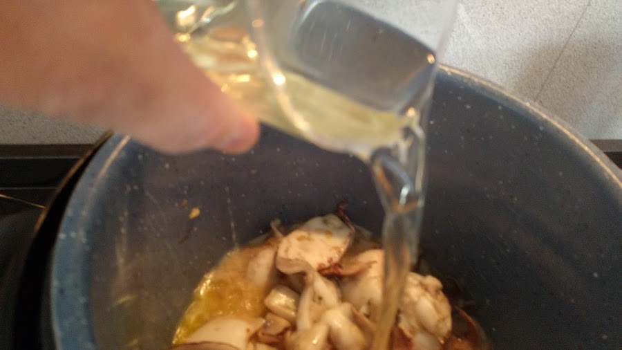 Medio vasito de vino blanco. Yo he usado Verdejo de Rueda