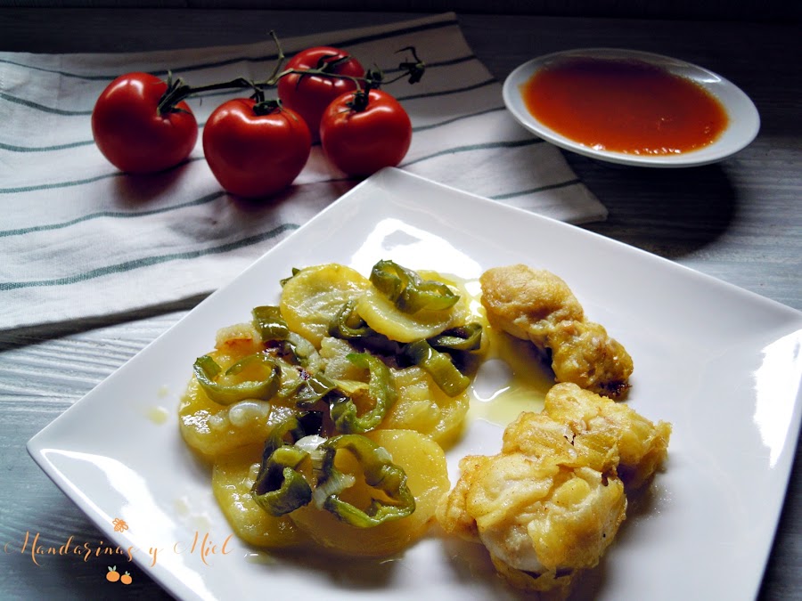 He combinado una receta muy tradicional y popular, como son las patatas a lo pobre, con una rica sepia rebozada y frita.....nada más sencillo y delicioso!!