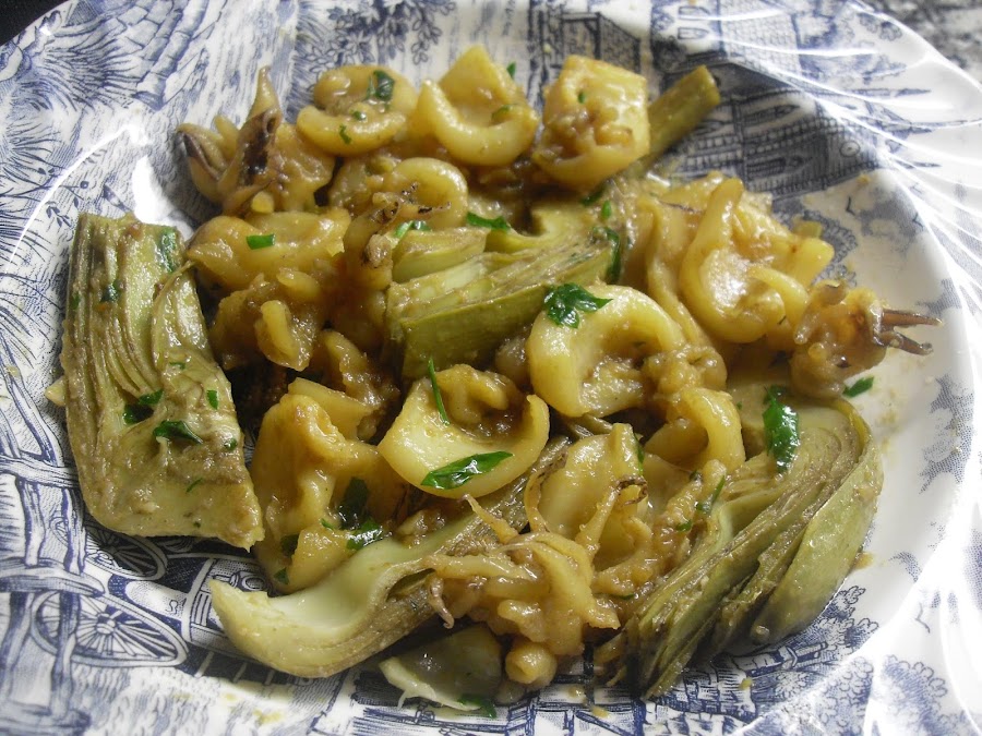 Un plato sencillo con unas alcachofas de temporada y sepia, que combinan maravillosamente.
