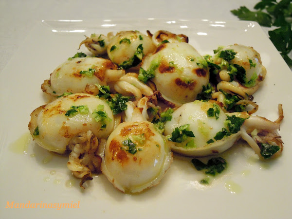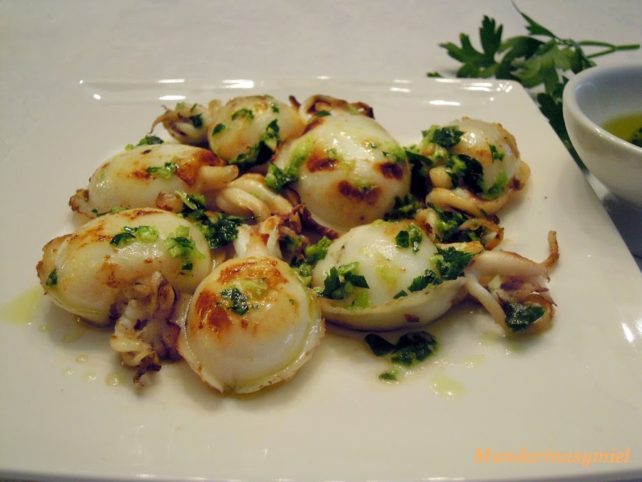 La receta que he elegido es de lo más sencilla, pero es como se suelen servir aquí.....a la plancha y acompañadas de una picada de ajo, perejil y aceite o simplemente a la plancha con un poco de all i oli. Yo hoy he preferido hacerlos con la picada, pero lo importante es la plancha.