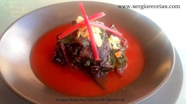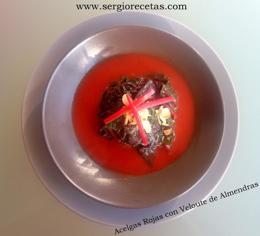 En una de mis ultimas incursiones a uno de estos rastros me hice con unas estupendas acelgas rojas que aunque sean acelgas tienen una textura diferente a las verdes por lo que nos puede resultar un tanto extrañas al principio sobre todo por el color tan intenso al que no estamos acostumbrados al comer verduras pero no os preocupéis porque con esta receta de "Acelgas Rojas con Veloute de Almendras" triunfaréis seguro.