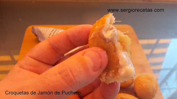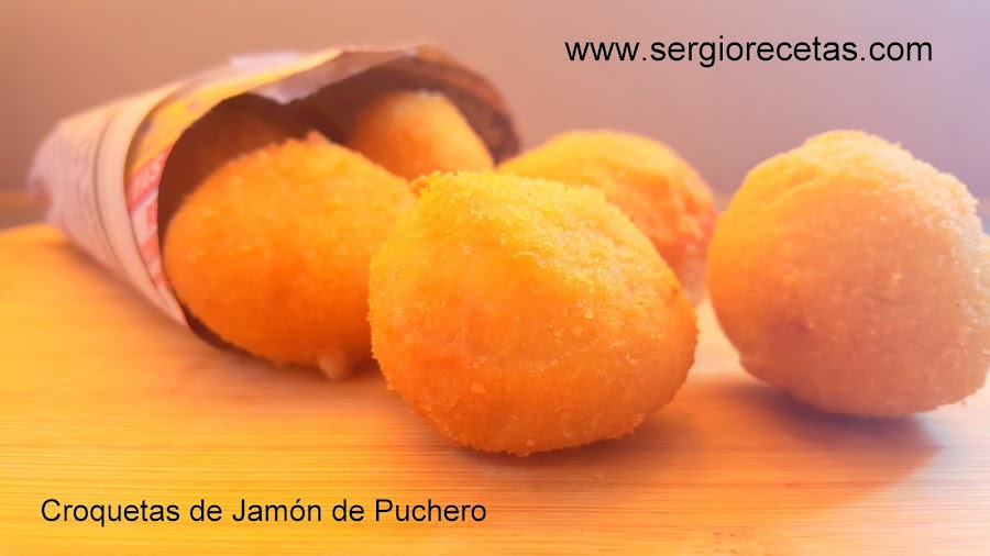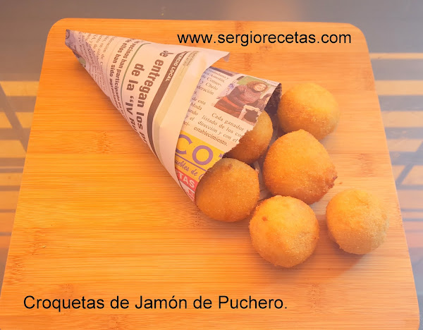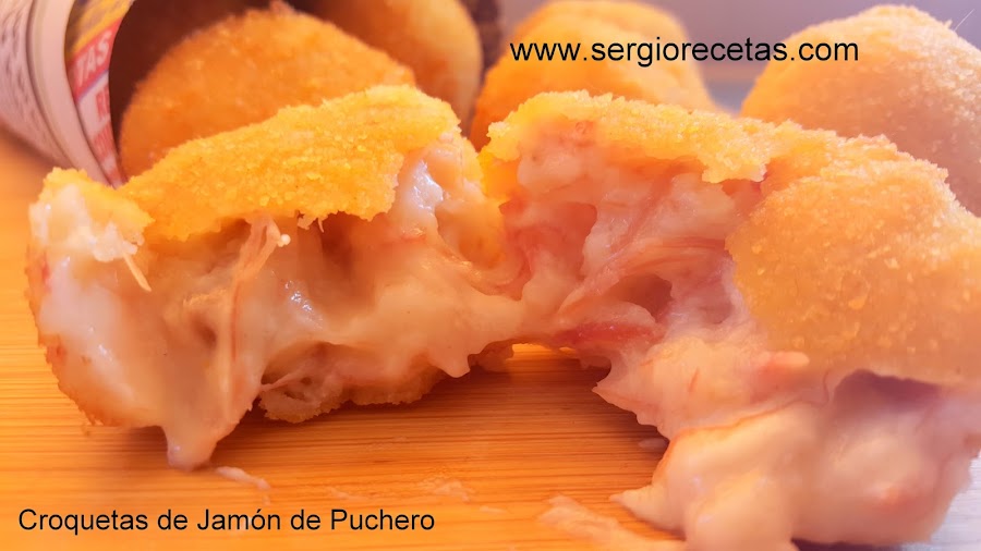 Lo que es una "Croqueta" a estas alturas de la vida ya todos sabemos lo que son y como se hacen, al menos de la forma tradicional pues ya hoy en día nos encontramos todo tipo de elaboraciones con forma de "Croquetas" que de "Croquetas" llevan sólo el nombre pues en su uso se emplean técnicas tan futuristas y químicos tan potentes que más bien son creaciones de laboratorio que "Croquetas" propiamente dichas. He llegado a trabajar en lugares donde se tiraban de 4 a 6 horas haciendo la masa (Perdida de tiempo total sólo para justificar el palo a la cartera que te van a dar), pero no os preocupéis porque con mi receta en apenas 30 minutos tendréis hecha una espectacular masa para hacer estas delicadas y cremosas "Croquetas de Jamón de Puchero"