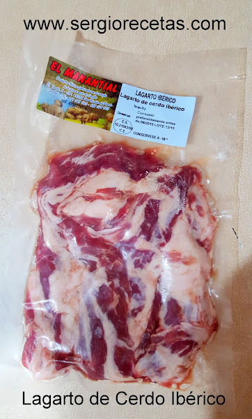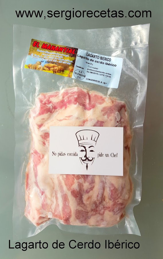 Hace unos días unos clientes de "Pideunchef.com" nos obsequiaron con una propina especial, un paquete de "Lagarto de Cerdo Ibérico" y me preguntaréis que ¿Que es eso?, pues eso mismo me pregunté yo pues nunca había oído hablar de tal parte del cerdo ni ibérico ni blanco ni nada y si, resulta que es un pequeña cantidad de carne del cual de cada cerdo se extraen sólo unos 300-400gr por lo que su adquisición viene siendo algo con cierta dificultad.