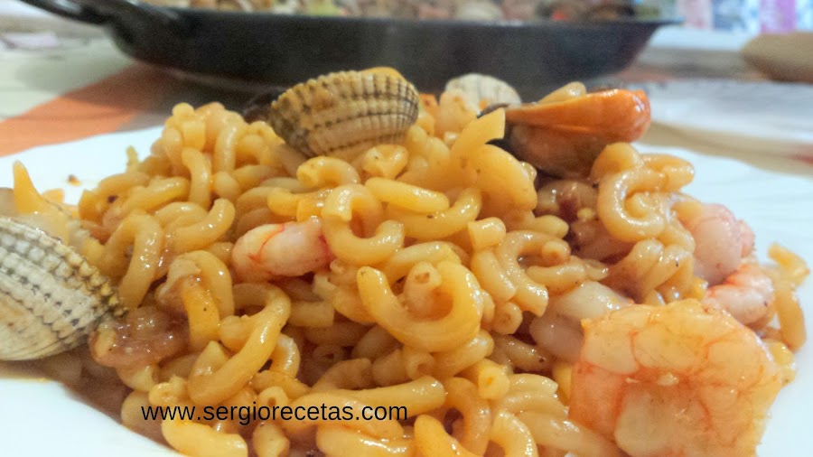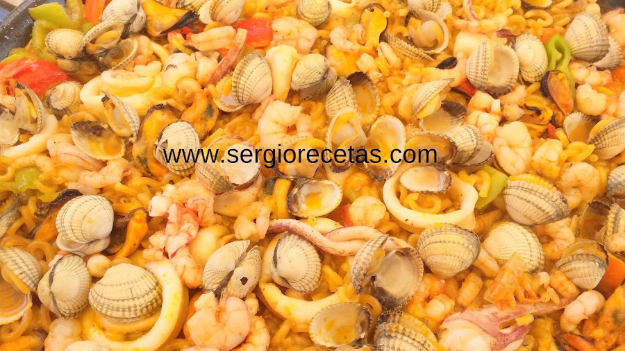 Es importante el uso de una paellera para este tipo de plato, pues se tienen que cocinar los fideos en extensión y no en altura para que no se queden arriba duros y abajo pasados.
