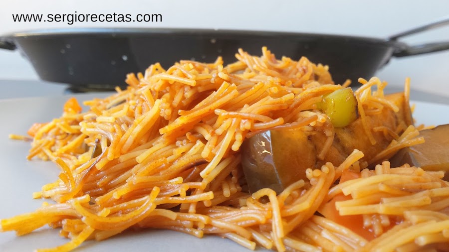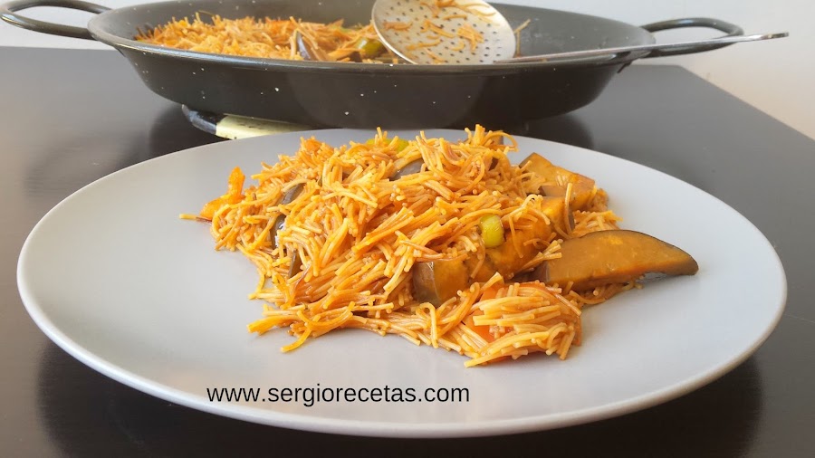 Hace unos días que llegué de vacaciones y, al menos a mi siempre me pasa, los primeros días después de la vuelta son horribles entre otras cosas porque no tienes de nada en la nevera, pero eso no es un inconveniente para nosotros. Algunas verduras deambulantes por el cajón de la fruta en el frigorífico, un puñado de fideos finos y muchas ganas de comer bien y en cuestión de unos pocos minutos teníamos una deliciosa Fideuá Rossejat de Verduras lista para servir y ser degustada.